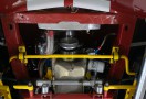 De kracht wordt overgebracht via een close ratio Tremec TKO 600 5-versnellingsbak, een robuuste en geliefde handgeschakelde transmissie die perfect past bij het vermogen en zorgt voor een directe, sportieve rijervaring. Het schakelen is strak en mechanisch, precies zoals je mag verwachten bij een high-performance Mustang.